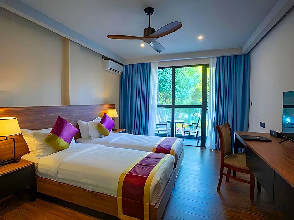 Guests can indulge in a variety of activities and amenities that promise relaxation and fun in the sun. Lounge by the outdoor swimming pool or enjoy the kids’ pool with your little ones—both are free for guests—while taking in garden views from your balcony. For additional relaxation, pamper yourself at the spa, or take advantage of snorkeling and water sports facilities (extra charges apply) to explore the vibrant marine life just beyond the shoreline. The on-site restaurant and live music evenings ensure your evenings are filled with delightful flavors and entertainment.